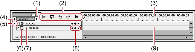 Display a scale with the unit selected in the time scale setting on the timeline. Right-click the time scale and click [Timeline Timecode] to display the timecode of the timeline or click [Zero base Timecode] to display the timecode with the beginning of the clip as 0. If a sequence marker is set for the position where the clip is placed, right-click the time scale and click [Go to Previous Sequence Marker] or [Go To Next Sequence marker] to move the timeline cursor to the previous or next sequence marker. |