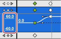 : Switch the changes of each parameter to the chart view. In the chart view, the timeline is represented by a chart display of the selected key. The parameters can be edited by moving the keys up and down.