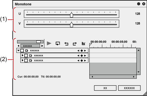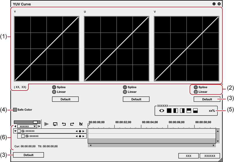 Adjust the YUV curve chart for each key frame. The field option for the key will be [Hold], and no change along the time axis is allowed. For how to set a key frame, see Key frame setting . |