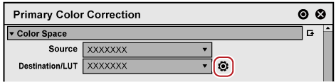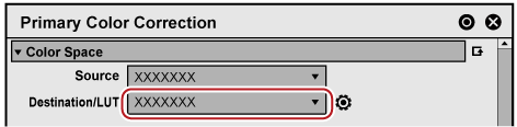 [Source] Select a color space to apply to the clip. [Destination/LUT] Select a color space or LUT to apply when exporting. Click [LUT Settings] on the right of [Destination/LUT] to display the [LUT Settings] dialog box. Configure settings of LUT, such as registering/unregistering LUT. [Base] Enable settings for color space conversion format.