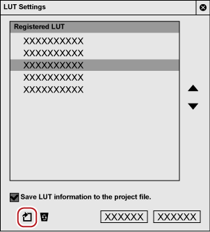 Check this item to save the information of the LUT file to the project file. Even when the project file is imported in a different environment from that where the file was created, it can be used with the registered LUT. |